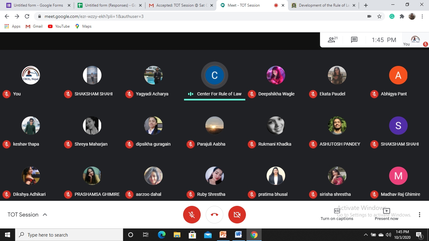 Center for Rule of Law (CROL) organized the Training of Trainers (ToT) session with an objective to advance and foster the law-abiding culture. Our goal was to enhance the understanding of the foundational importance of Rule of Law and its multidisciplinary nature.